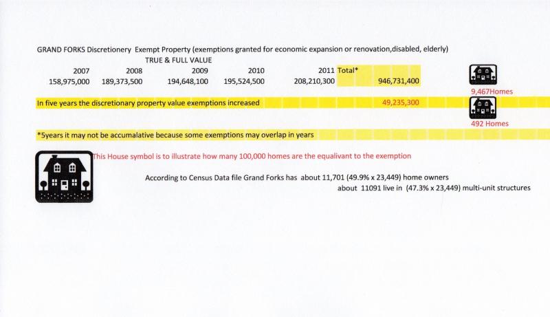 From 2007 to 2011 the exemptions they have given have increased $49,235,300 It would be like allowing 492 homes valued at $100,000 not having to pay property taxes.
